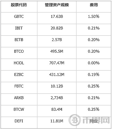 如果我们看看 BTC 现货 ETF,我们会发现 GBTC 的费用最高,而大多数 ETF 的费用在 0.2% 到 0.25% 之间,HODL 是唯一的例外,拥有非常慷慨的费用豁免期。