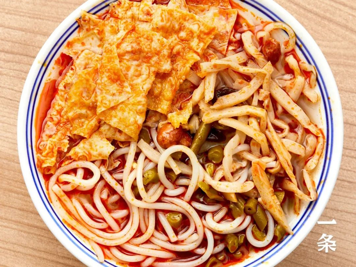 每一根粉都浸足汤汁、裹满红油,夹带着腐竹酸笋一起“呲溜”下肚,超过瘾。