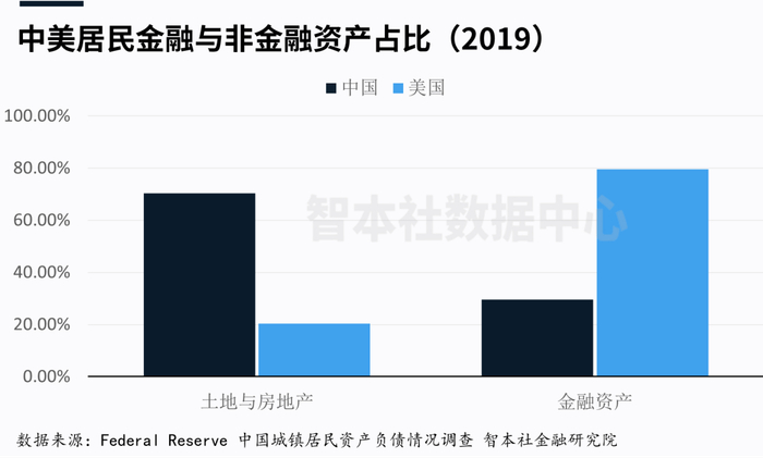 日本大衰退之前,居民持有最多的资产是不动产(土地和房地产),比例为41%;大衰退后,日本居民持有的不动产比例下降到22%,所持有的最大资产变成了现金与存款,占比达到34%。