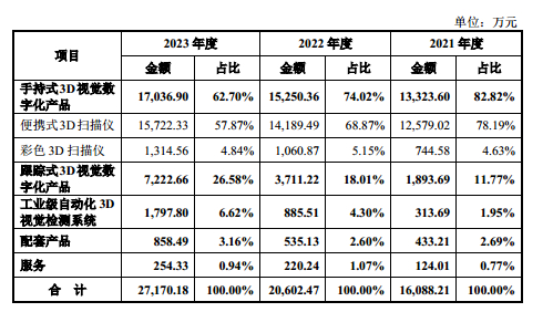 可见,便携式3D扫描仪是思看科技最重要的产品,且公司所有的产品均呈现正向增长的趋势。