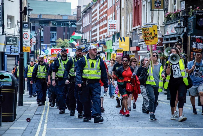 8月7日,在传出英国极右翼群体可能在数个城市组织新一轮大规模的示威活动之后,英国各地民众开始自发组织起声势浩大的反对极右翼抗议的游行。最终,7日当晚,全英国几十个城镇的街上变成了爱与和平的海洋,人们举着“白色、黑色、棕色,欢迎所有人”“阻止极右”“爱与团结”的牌子,和平地组织了游行。