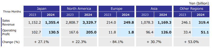 ● 一季度实现了历史最高的季度营业利润,达到了4847亿日元,同比增加了22.9%。营业利润率也从上年的8.5%提升至9.0%。