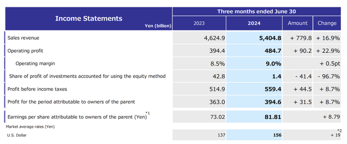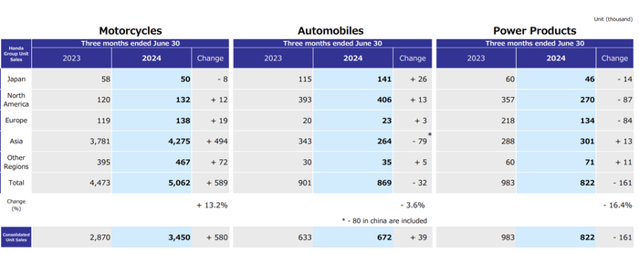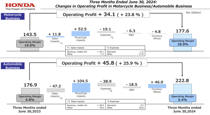 本田公司发布了截至2024年6月30日的第一财季的财报: