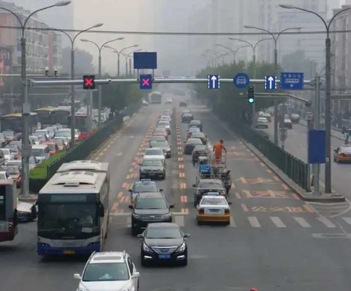 北京当年有个非常经典的“三块板”道路设计,中间一块走汽车,两侧走自行车,中间用绿化带隔开。