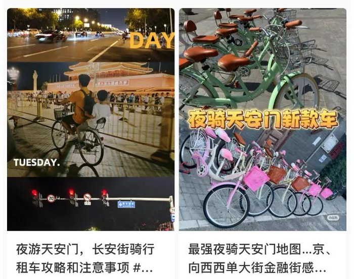 在社交平台上,最常被推荐的一条骑行线路是沿着长安街,从王府井地铁站骑到西单地铁站。