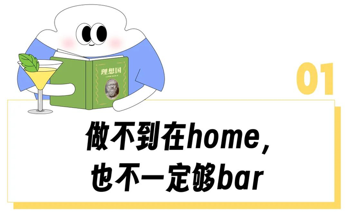 所以看到没,homebar本质是一场大型cosplay,把酒吧打造成像家的样子。不求形似,意思是不必把你的锅碗瓢盆衣服袜子洗护用品都露出;只求神似,得让顾客如同住进《老友记》里的精品公寓,享受宾至如归的体验。