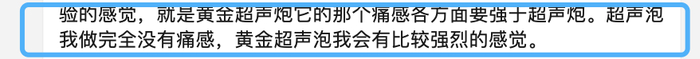 虽然没有烫伤风险,相应的,相比能量稍低的一代超声炮,黄金超声炮的痛感可能会稍重。