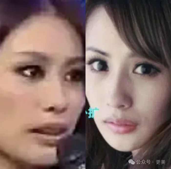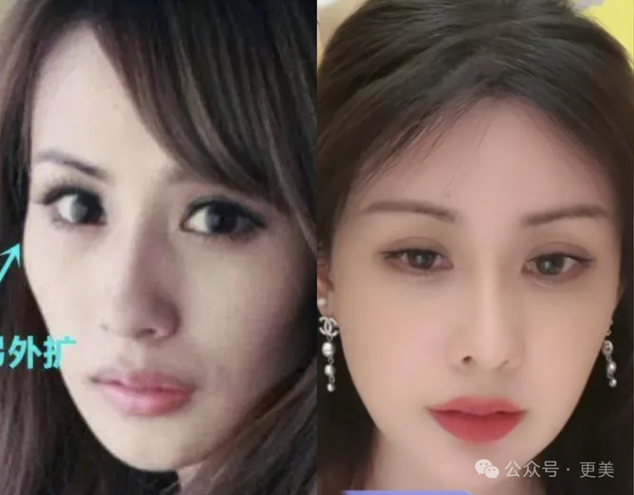 对她改善最大的当属轮廓框架,方形外扩的下颌骨收进去后,成熟老成感一扫而光,不看五官就能直接年轻10岁。