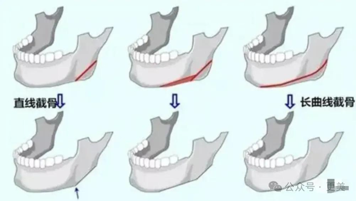 第三步下颌骨用长曲线截骨手术,把控下颌支、下颌体、下颌角比例关系,适当保留下颌折角。