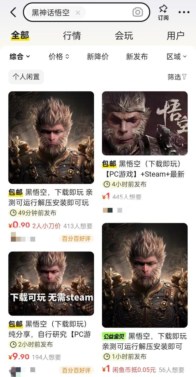 1元可在闲鱼购买盗版《黑神话:悟空》?律师:或涉侵权