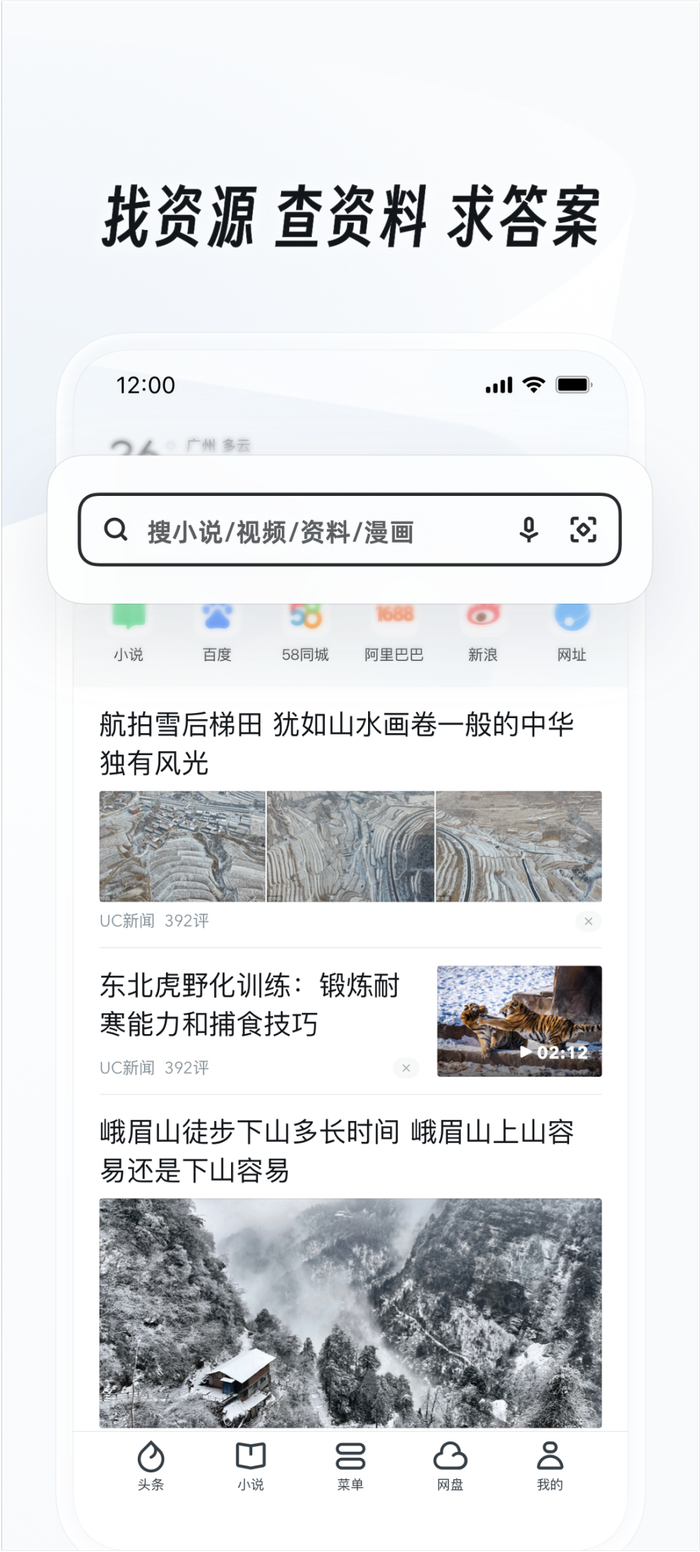 与传统的搜索引擎不同,UC浏览器简化了“搜索—结果”繁琐的中间过程,并匹配了丰富的内容资源,为用户铺设了一条直达目的地的捷径。搜小说、搜视频、搜短剧、搜资料,用户想看的内容,一搜就有。