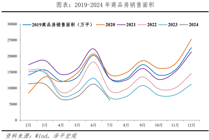 3)二手房分流住房需求、新房依然承压。二手房交易占比逐渐提升,根据中指院数据,2024年1-6月二手房销售面积占总销售面积的比重为26.3%,较2023年全年提升3.8个百分点。从新房和二手房市场表现看,2024年1-7月样本城市新房销售量为过去5年(2019-2023年)均值的55%,同期样本城市二手房销售量为过去5年均值的110.7%。
