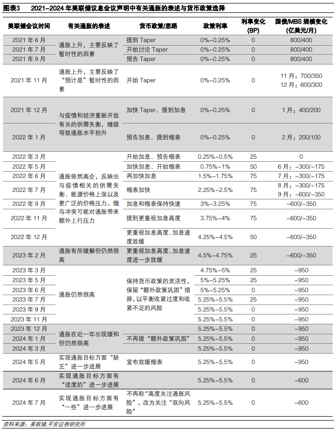 美联储对通胀的看法,是过去四年始终贯穿其货币政策选择的核心线索。我们在报告《2024年美联储利率政策展望》中进一步讨论了美联储为何误判通胀继而导致紧缩行动过迟。一方面,美联储政策受到就业目标的束缚。2021年,美国失业率在大部分时间里保持在5%以上。在“类滞胀”环境下,美联储希望平衡就业与通胀目标;2021年11月,当失业率回落至4.5%以下,美联储才更有转向的底气。另一方面,不排除美联储主席换届对货币决策的影响。2021年,鲍威尔面临连任联储主席的压力,其竞争对手布雷纳德十分鸽派,二人可能陷入某种“鸽派竞争”。2021年11月获得提名后,鲍威尔对通胀的态度恰好发生明显转变。