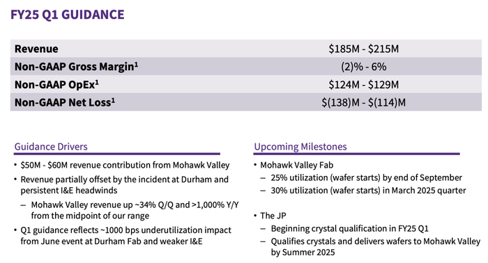 所以Wolfspeed正在评估关闭位于北卡罗来纳州达勒姆的 150 毫米设备工厂的时机,位于纽约州莫霍克谷的 200 毫米设备工厂正在以显著较低的成本产生稳健的业绩。