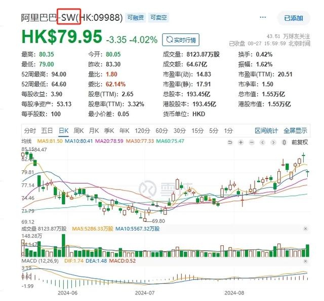 “具体来说,二次上市时,投资者们在港交所交易的其实不是股票。因为中美没有股票市场相互交易的协议,所以只能通过QDII出境投资。在这种情况下,‘SW’的底层资产是美股,只是以存托凭证的形式在港交所交易而已。所以这些带‘SW’的,不在港股通清单里。阿里这次操作,是为了扫除进入港股通的法律隐患和其他风险隐患。”上述业内人士表示。