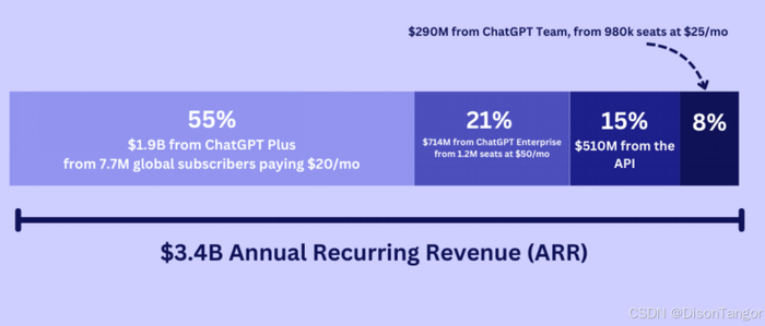 即便是OpenAI,其在C端市场的收入已达到19亿美元,主要来自全球770万的订阅者,每人每月为ChatGPT Plus支付20美元,但仍远远不足以覆盖构建和运行模型的成本。