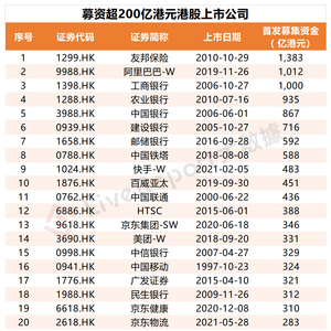 目前,募资超200亿港元的港股上市公司共38家,时间最近的还是三年前的百度、哔哩哔哩、京东物流。