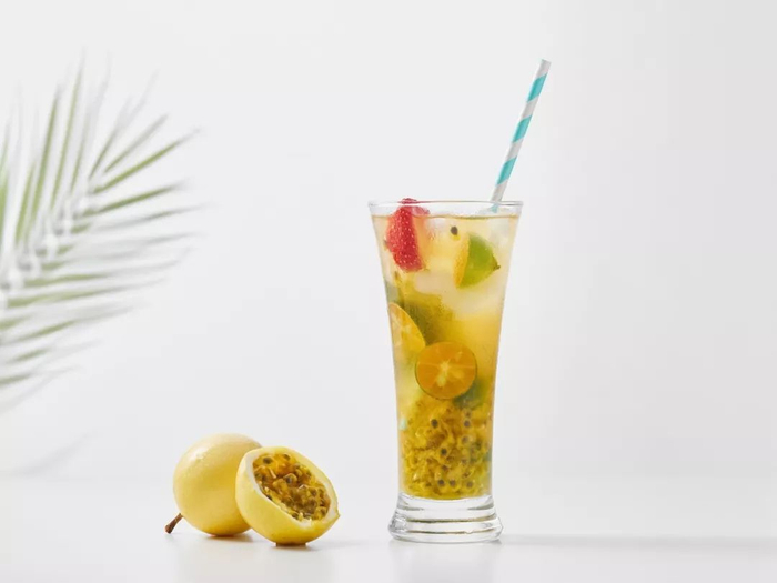 百香果也可以和绿茶、红茶、柠檬等搭配在一起,做成美味可口的柠檬百香果茶。