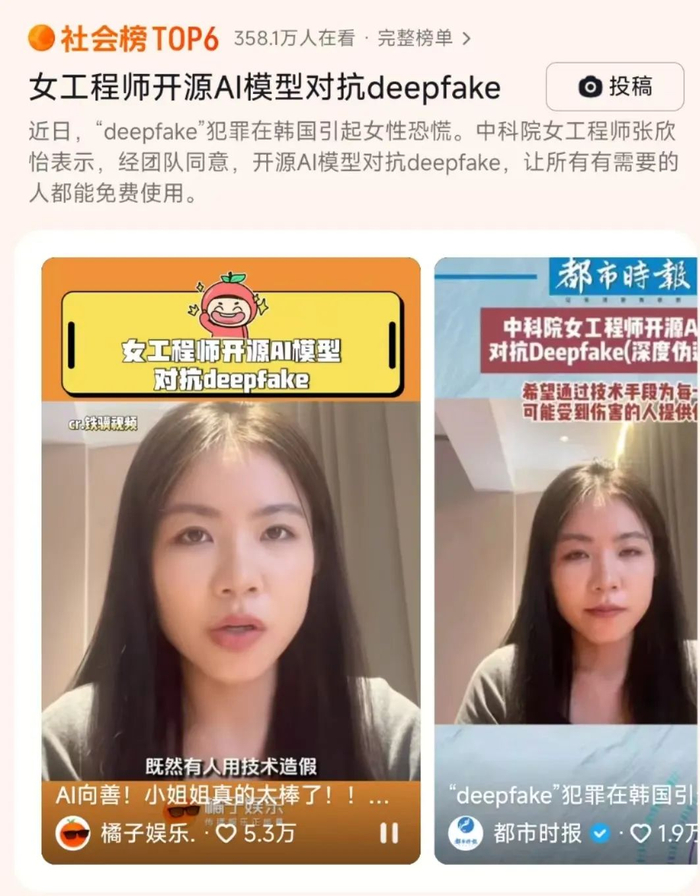 她把他们的模型直接开源了,用来对抗Deepfake。