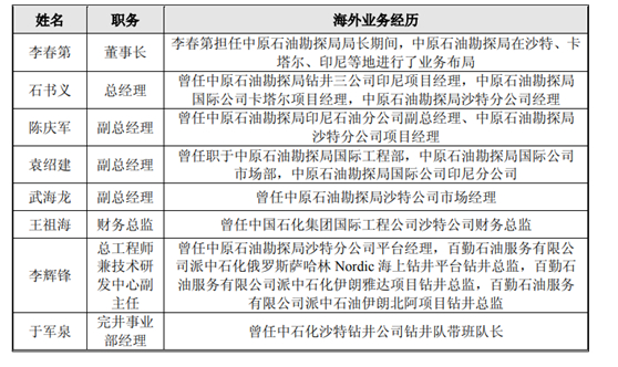 独立董事中的两人有中原石油任职经历。招股书显示,曾在中原石油勘探局任职的高管比比皆是。他们有的担任总经理,有的担任总工程师......作为曾经的勘探局长,现任董事长李春第也是他们名正言顺的老领导。