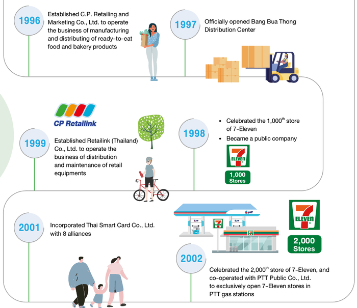 1988年,泰籍华人创办的跨国企业正大集团(又叫卜蜂集团)拿下7-11在泰国的全权代理,次年开出泰国第一家7-11便利店。