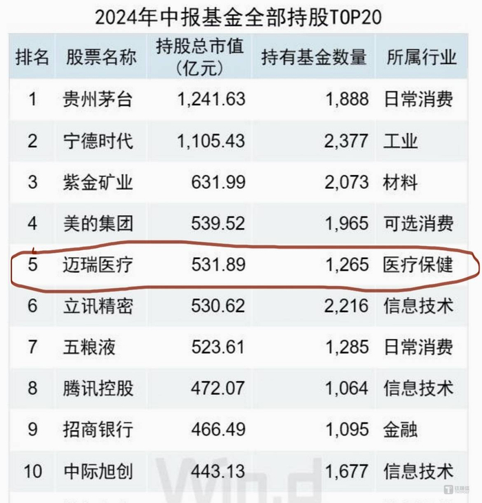 另一方面,在其创新力与品牌力双管齐下,产品多元化与全球化布局持续加深,再加上商业模式出色、行业格局清晰等一系列因素叠加之下,市场上的迈瑞医疗早已是“巴菲特信徒”们抱团取暖的稀缺标的。最新数据显示,迈瑞医疗不仅身现类似易方达优质企业三年持有期基金的隐形重仓股名单中,公募基金对迈瑞医疗的整体持股市值超过了500亿。