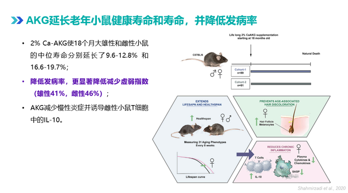2、AKG延长老年小鼠健康寿命和寿命,并降低发病率