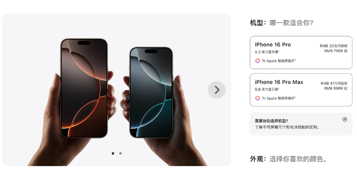 其中iPhone 16全系最早在9月13日本周五开启预定,并于9月20日起正式发售。国行版售价也在官网公布:iPhone 16售价5999元起,iPhone 16 Plus售价6999元起,iPhone 16 Pro售价7999元起,iPhone 16 Pro Max售价9999元起。