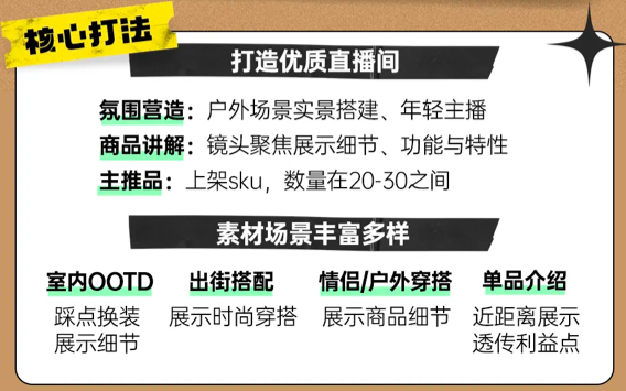 2、轻户外:通过沉浸式直播和细节镜头,抓住时尚与功能并重的市场新宠