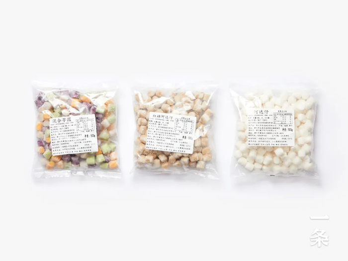 此次带来的四色混合芋圆、红糖丸子、阿达子,规格为500g/袋,每款独立各一袋,共3袋装。