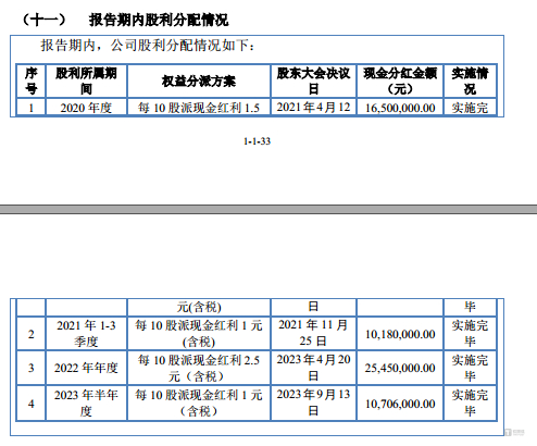 2020年-2022年和2023年上半年,方正阀门的现金分红情况具体如下: