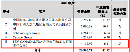 更为令人费解的是,到了2022年,明面上方正加拿大的股权正式与方正阀门无关的一年,方正阀门却向方正加拿大销售了4112.97万元的产品,助其成为了公司的第五大客户。