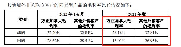 可见,2022年方正阀门销售产品至方正加拿大与其他外销客户之间的毛利率相差巨大,方正阀门存在让利行为。为何方正阀门在退出方正加拿大之后,要给予方正加拿大如此大的让利?