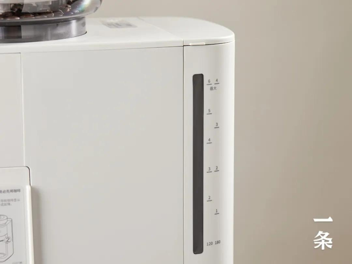 咖啡机有5档研磨粗细可供调节,大家可以根据咖啡豆的特性、新鲜程度自由调节。
