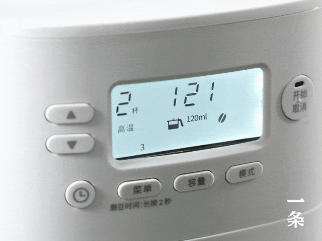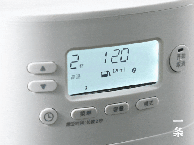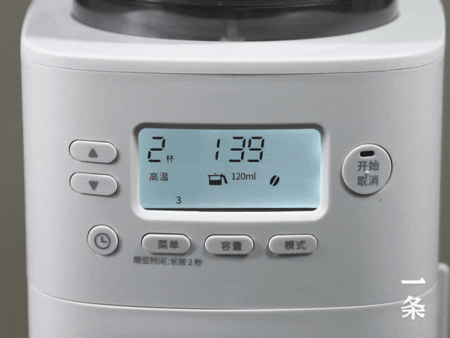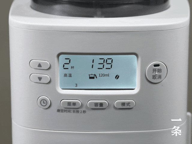 按“容量”键,可选择咖啡滴滤量,还有专门针对夏日冰咖啡的模式。