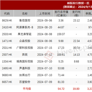 2024年以来,港股已有44只新股上市,合计募资约197.43亿港元。最近一周(9月8日-9月14日),有1家公司上市,1家公司招股,1家公司聆讯,3家公司递表。
