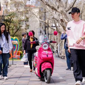 给摩托车、电瓶车更换外壳是十几年前的潮流。那个年代,二轮车不论是在车型还是外观上,都偏向男性审美。因体型大而圆润,“雅马哈迅鹰”被车友取名为“胖头鱼”,也因为外观雷同、单调,颜色多以深色、纯色为主,二轮车也成为街上最普遍且普通的存在,普通到大部分人的眼神不会为它多停留一秒。