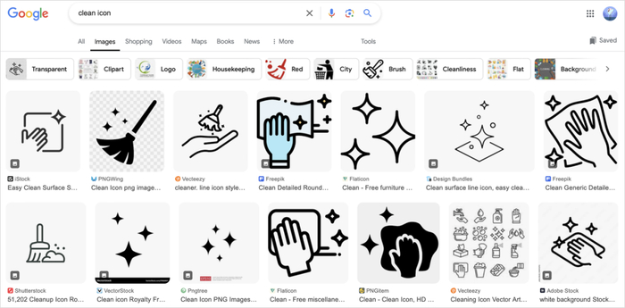 洗衣粉、清洁剂的包装,是不是经常能看到闪闪发光的小星星?因为四角星星代表干净、闪亮。在google搜“clean icon”出来的全是四角星星。