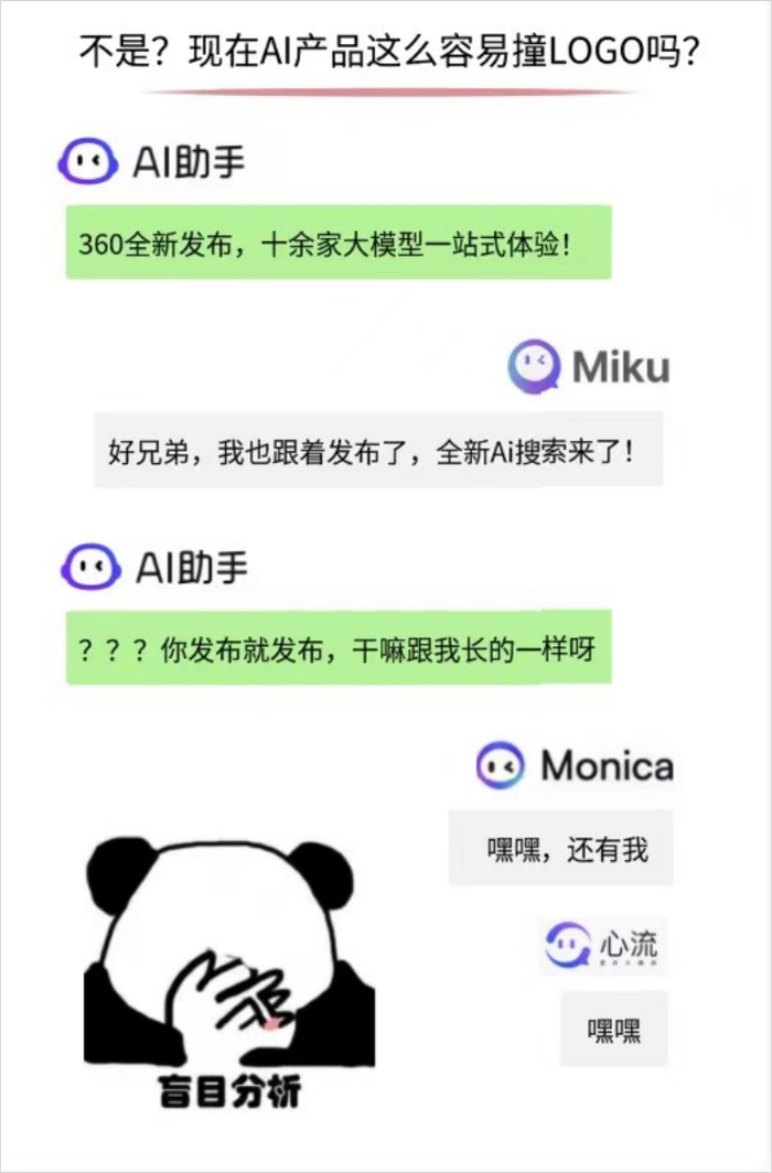 logo需要有独特性,需要宣传品牌,更要被用户准确识别。比如可口可乐的红白标志,麦当劳的黄色M。所以其实除了那些套壳的玩意,正经AI产品没几个会抄GPT的logo。