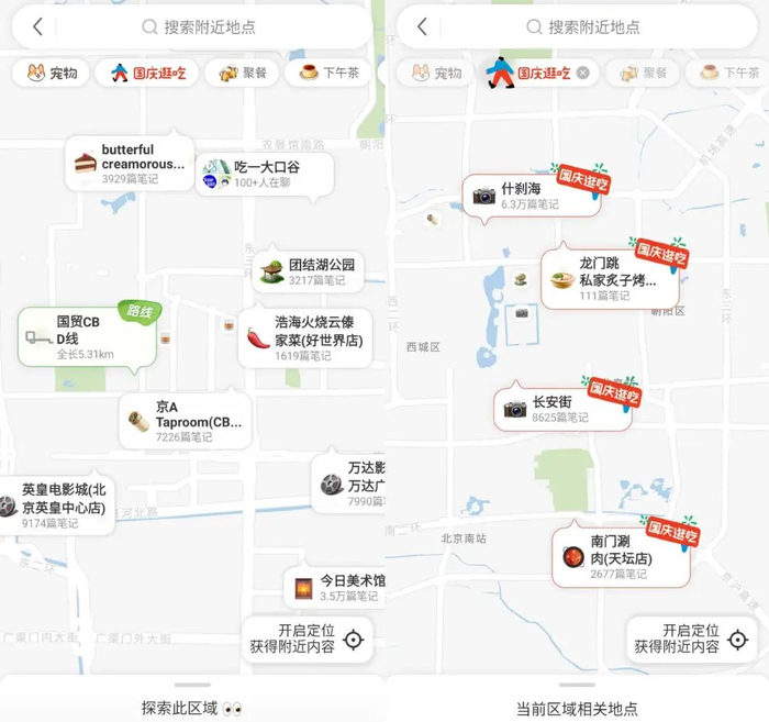 虽然依旧没有单独开设团购入口,但在今年7月底,小红书上线“地点留言”功能,在首页顶部“附近”入口设置了地点探索浮窗,进而形成与本地生活内容相关的集合页,将具体地点与笔记关联,涉及餐饮、游玩、观影等多个分类。其中,部分餐饮店铺不仅在其页面展示了地址、电话、群聊、留言、签到等信息,还发布了商家推荐菜和团购商品。此外,电厂发现,小红书在8月底开启的“餐厅周”活动中加入了餐饮预订按钮,收到定向邀约的商家可以开通这一功能。