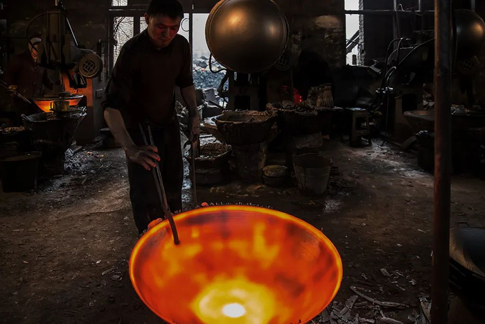 一口厨源铁锅的原料,要先经过提炼加工,去除掉多余杂质后,才进行浇铸。