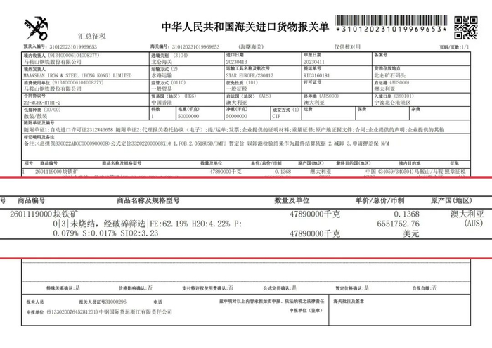 👇进口报关单