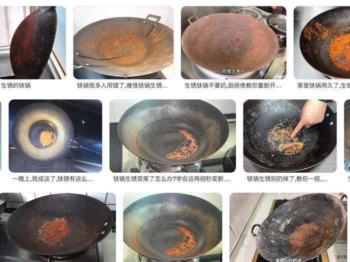 就像火锅底料一样,千万别觉得夸张,原理其实很简单,铁和水、空气反应,一晚上就会生锈(锅纯度越高越容易反应)。