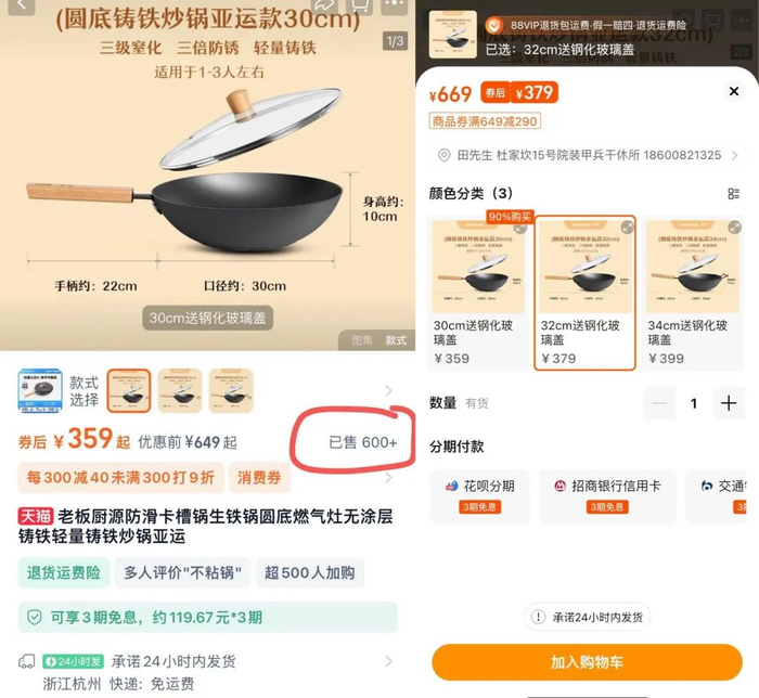 之前我们卖过几十块、100 左右的铁锅,反馈也不错。但贵有贵的道理,品质、做工、细节,都是有差距的。