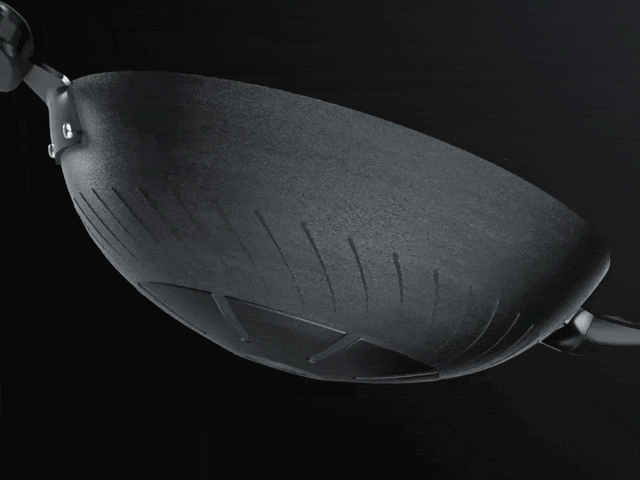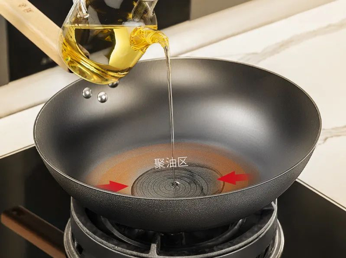 锅底黄金微弧曲线,锅底聚油,无需太多油就能划拉、翻炒出顺滑的感觉。