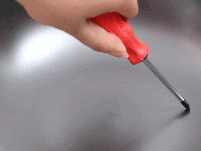 螺丝刀使劲划,锅面完好无损~
