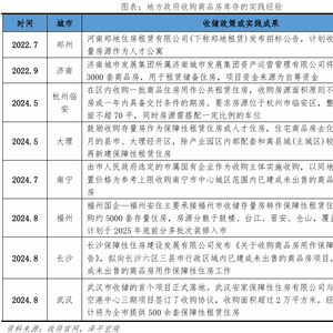 地方政府陆续出台政策盘活存量住房、推进去库存。地方政府回购商品房政策出台的时间节点多是库存高企、去化困难时期。2014年,多地曾试点政府回购商品房充当安置房。2022年7月,郑地租赁收购郑州四环内存量房源作为人才公寓;10月,苏州对6个区及4个县市回购约1万套新房;湖州、邯郸、阿勒泰等城市也发布政策鼓励将存量房源转化为保租房。自 517 央行首次提出 3000 亿保障性住房贷款收储去库以来,当前全国约60城表态支持国有企业收购存量商品房用作保障性住房。其中,郑州、济南、重庆、福州、青岛、天津、武汉、长春更是公布已完成收储甚至已转化为保障房投入运营。