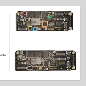 iPhone 16 Pro 的逻辑板分为两块双面印刷电路板(PCBs),分别是 RF(射频)板和主板。RF 板负责管理设备的无线连接和通信功能,而主板则负责处理、存储和其他核心功能的运作。