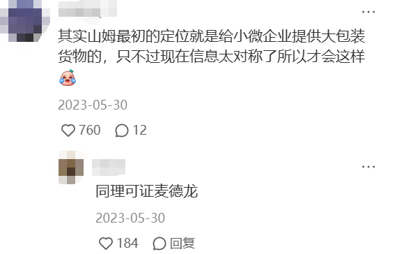 事实上,早年间美国一线城市的企业主需要大量采购食品,但普通超市价格高成本大。当时还没开山姆的沃尔玛,手握成熟供应链刚好能满足这种需求,山姆会员店这才应运而生,这种仓储超市成为了给小微企业提供低价批发商品的供应渠道。