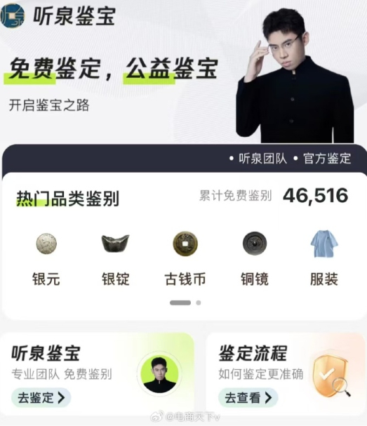 在将流量向销量转化的过程中,听泉鉴宝给自己套了一层名为“公益”的盾:大号公益鉴宝、吸粉引流,小号交易文物、转化变现。